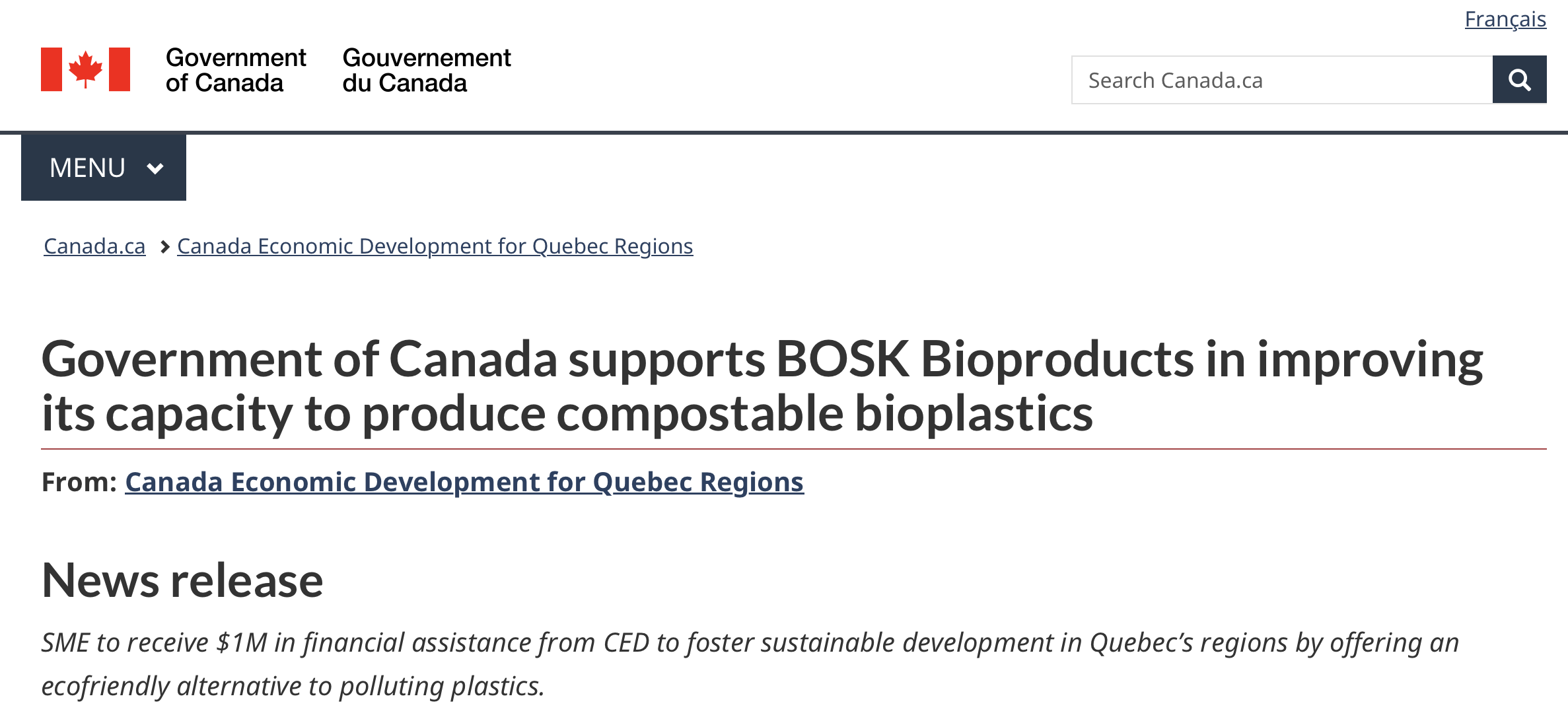 Bosk Bioproducts collects industrial waste, such as bio-sludge from paper manufacturing, and converts it into compostable bioplastics. The organization is now receiving $1M in financial assistance from Canada Economic Development for Quebec Regions (CED). This support will help Bosk Bioproducts in enhancing the production capacity for its bio-based bioplastic, REGENâ„¢.