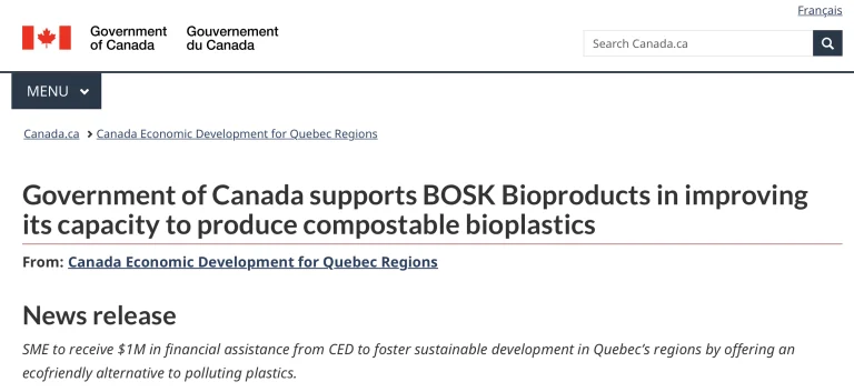 Government of Canada supports <a href=”https://www.linkedin.com/company/bosk-bioproducts/”>Bosk Bioproducts</a> in improving its capacity to produce compostable bioplastics InNews February 14, 202400