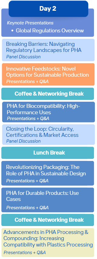 Join industry leaders, investors, and innovators for a 1,5 hour deep dive into the critical factors driving the growth of PHA. This strategic session will feature expert presentations on financing, market creation, and real-world scaling success stories, followed by a dynamic panel discussion on accelerating PHA adoption. Gain key insights and actionable strategies to propel the industry forward.